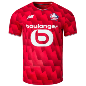 La camiseta local del Lille 2025/26, inspirada en la imponente Ciudadela de la ciudad, presenta una base roja con un sofisticado estampado geométrico que recrea patrones pentagonales presentes en el escudo. El cuello en pico y los puños lucen discretos ribetes en azul, blanco y rojo, evocando la bandera francesa de forma elegante. En la parte superior de la espalda aparece la frase “Fiers. Forts. Féroces.” acompañada de una flor de lis, reflejando el orgullo y la herencia del club. Confeccionada por New Balance con tecnología NB Dry y tejido ligero, ofrece alta transpirabilidad, ajuste preciso y confort. Se comercializa junto con pantalón y medias azules con toques rojos y blancos, y está disponible tanto en versión Authentic usada por jugadores como Replica para aficionados.